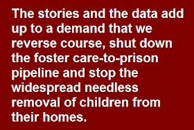 So it’s not surprising that people such as Riley would want to dismiss the lived experience of so many of the former foster youth who spoke to the Kansas City Star from their prison cells.  Their stories bring the data to life.  The stories and the data add up to a demand that we reverse course, shut down the foster care-to-prison pipeline and stop the widespread needless removal of children from their homes.  Their stories, all of them, also bring to life the need to curb needless foster care in order to give workers to find more children in real danger – so foster care can save their lives.
